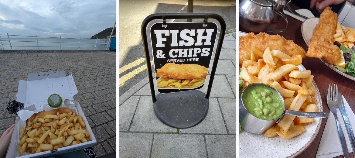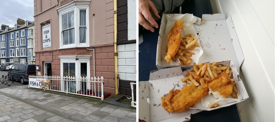 Great place to have fish and chips in Aberystwyth. We were looking somewhere to get fish and chips to takeaway because we had our dog with us. We ordered cod and chips, which was £9 a portion. It was freshly cooked in front of us, and it was delicious.