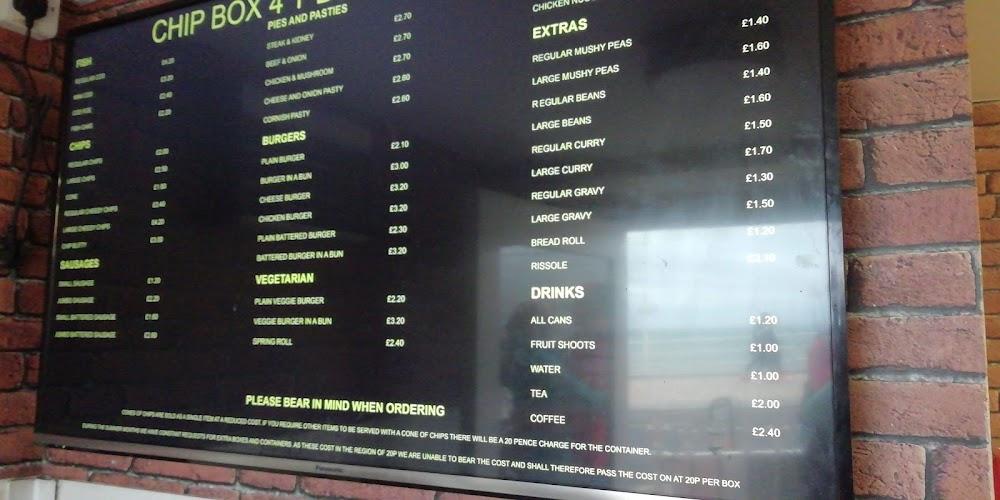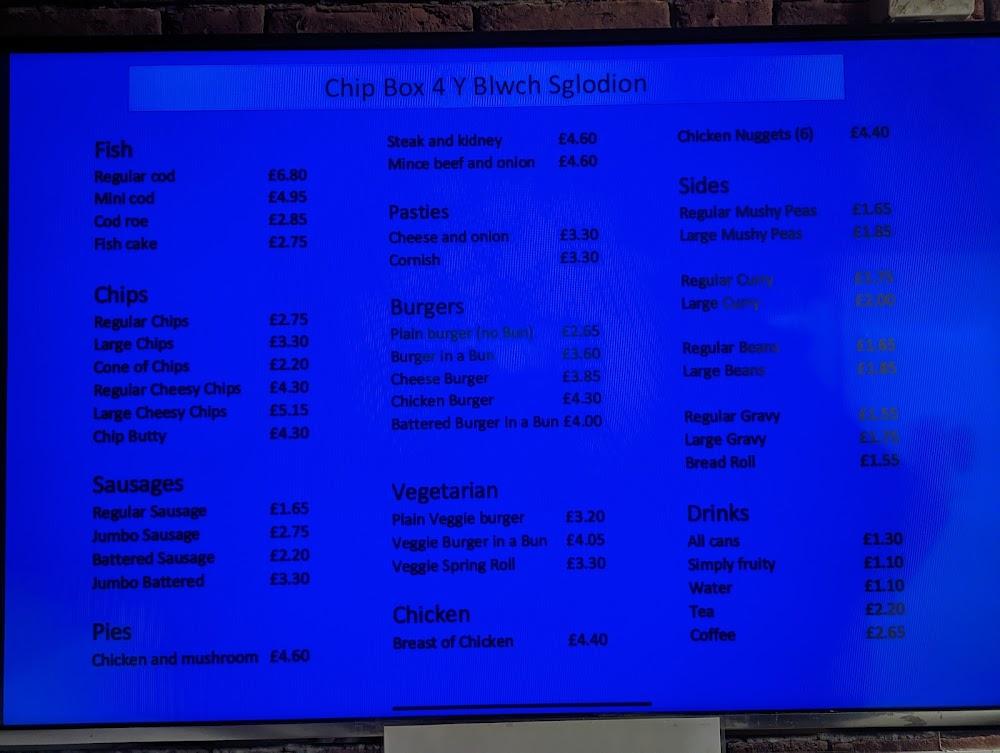 Located in the picturesque seaside town of Aberystwyth, The Chip Box 4 boasts a prime spot just a stone's throw from the beach. The charming coastal setting enhances the experience of enjoying freshly fried fish and chips, as diners catch the sea breeze while savoring their meals. The restaurant typically attracts a diverse crowd, including families, university students, and tourists exploring the area. Guests often queue up outside, drawn by the aromas wafting down Marine Terrace, reaffirming its reputation as one of Aberystwyth's oldest and most authentic 'chippies' since the onset of British seaside culture.